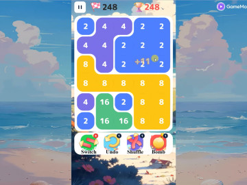 玩家的目标是通过点击主游戏板上相邻的相同数字来消除这些数字并创建一个两倍大的新数字,从而将更大的数字组合在一起
